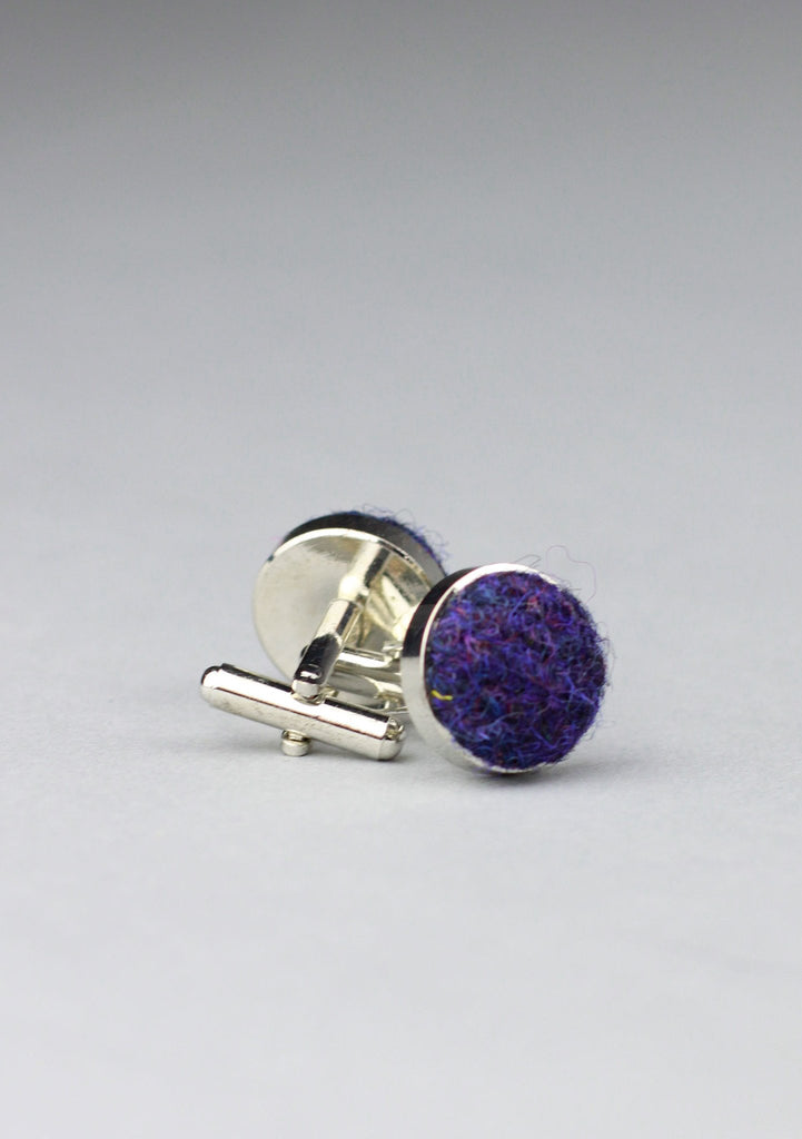 Round, classic cufflinks cut from genuine deep Green and Purple Harris Tweed. Perfect for a laid back, rural wedding or as a gift for the stylish individual. Accessorise with a tweed tie and match up with one of our popular Harris Tweed hip flasks.