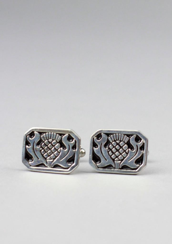 Celtic-inspired cufflinks featuring iconic thistle design. The perfect accompaniment to any kilt jacket, customise with your choice of finish.