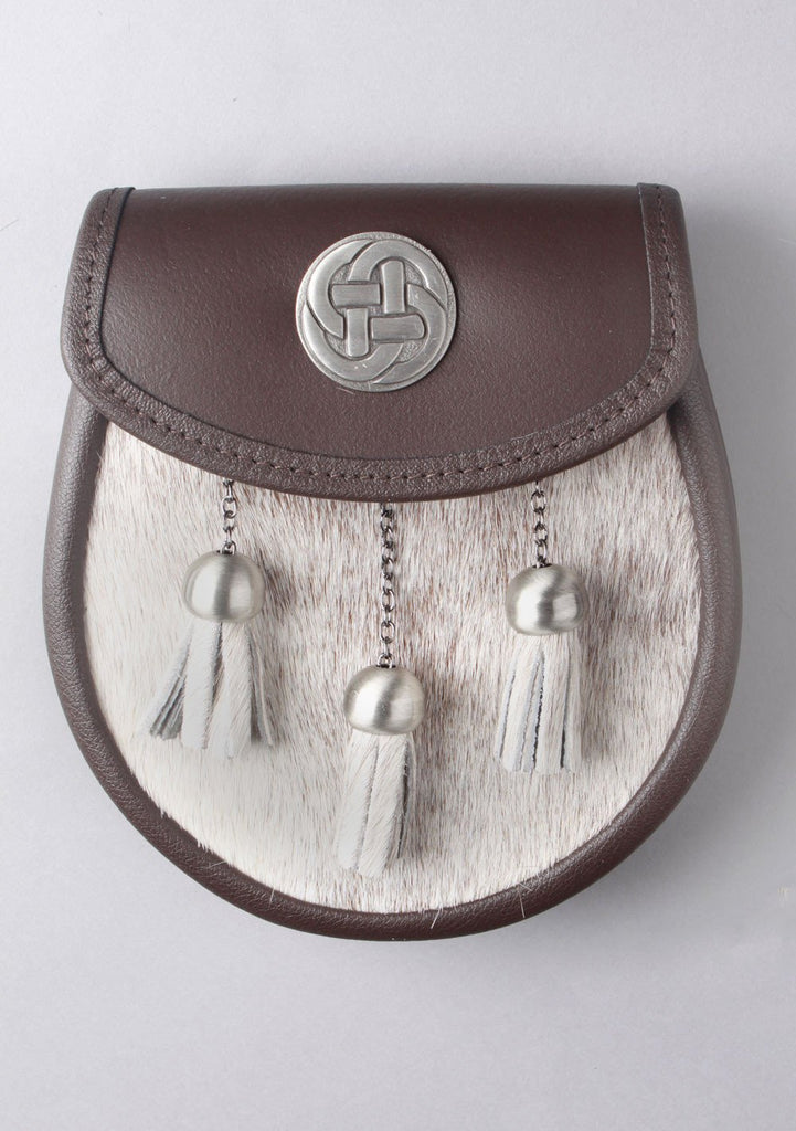 This sporran features a knot targe, available in brown leather and light bovine with three matching, polished tassels.